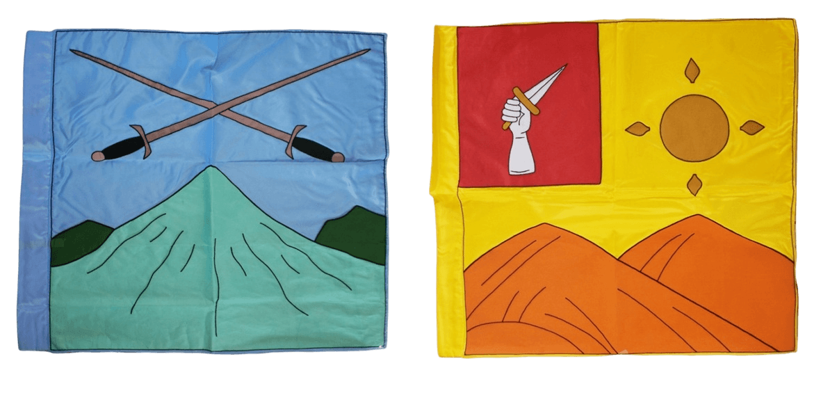Hand embroidered tapestry - flags with ornate design are available up to 80-inches,