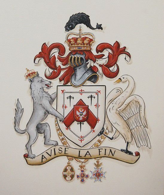 Custom Coat of Arms w. wolf and swan supporters
